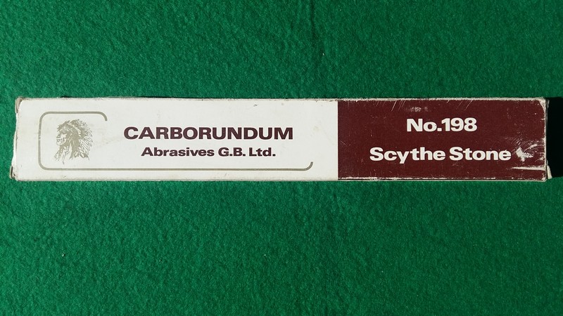 Carborundum scythe stone No.198 Abrasives GB Ltd in box