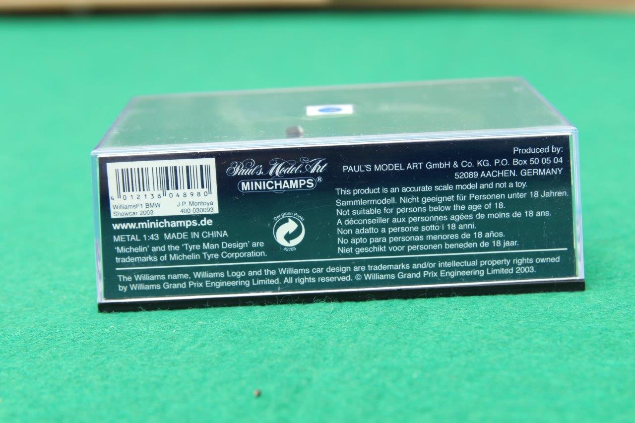 Minichamps 1:43 diecast racing car williams F1 BMW J.p. montoya show car 2003