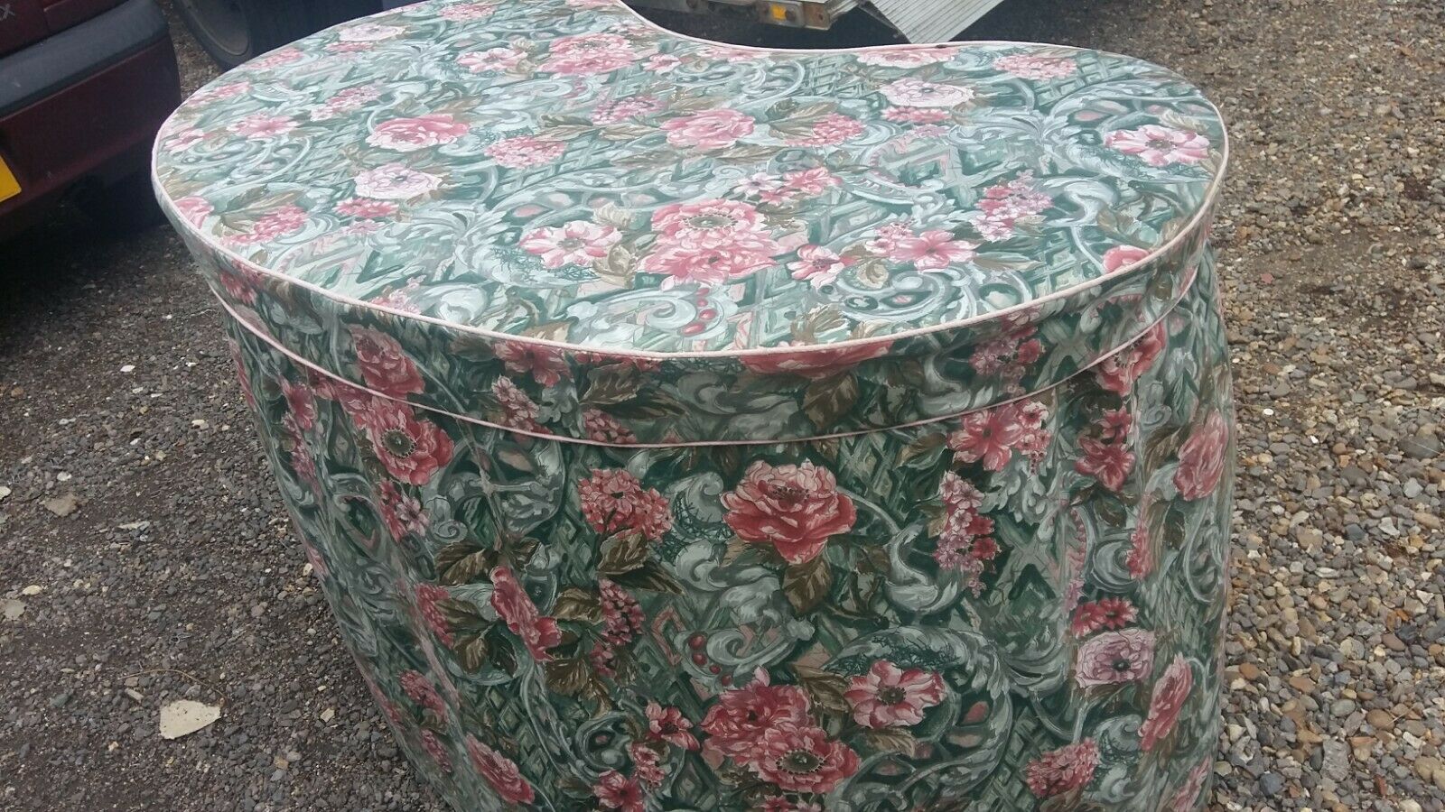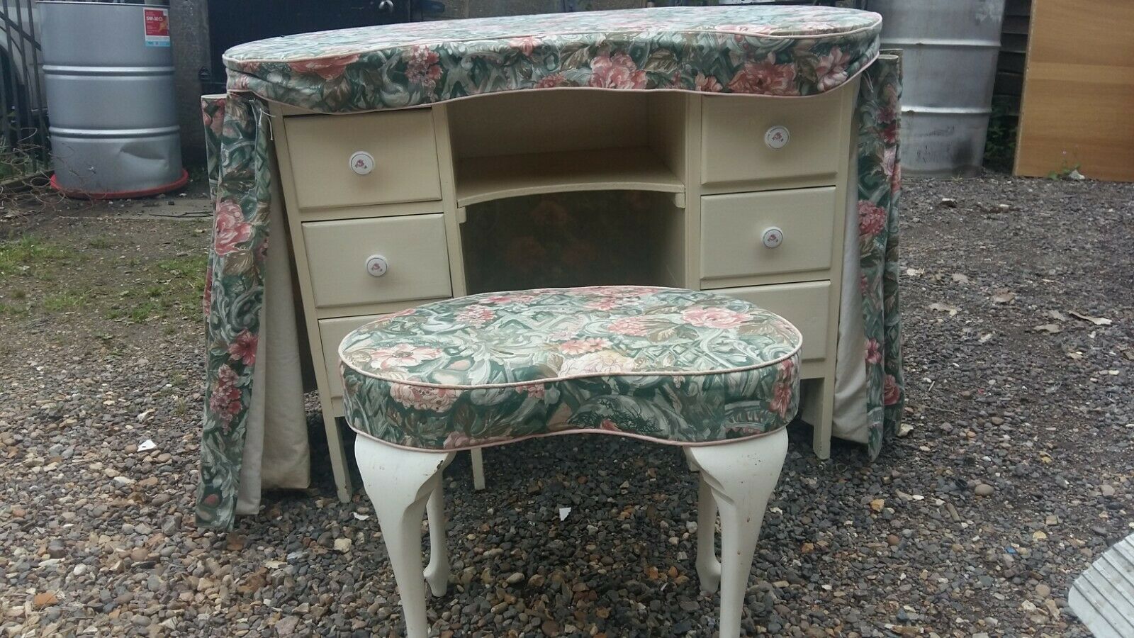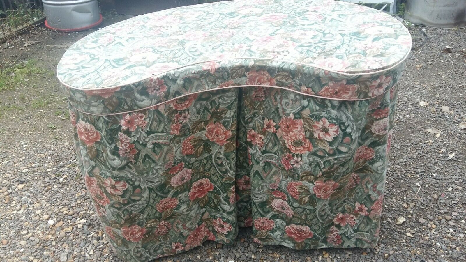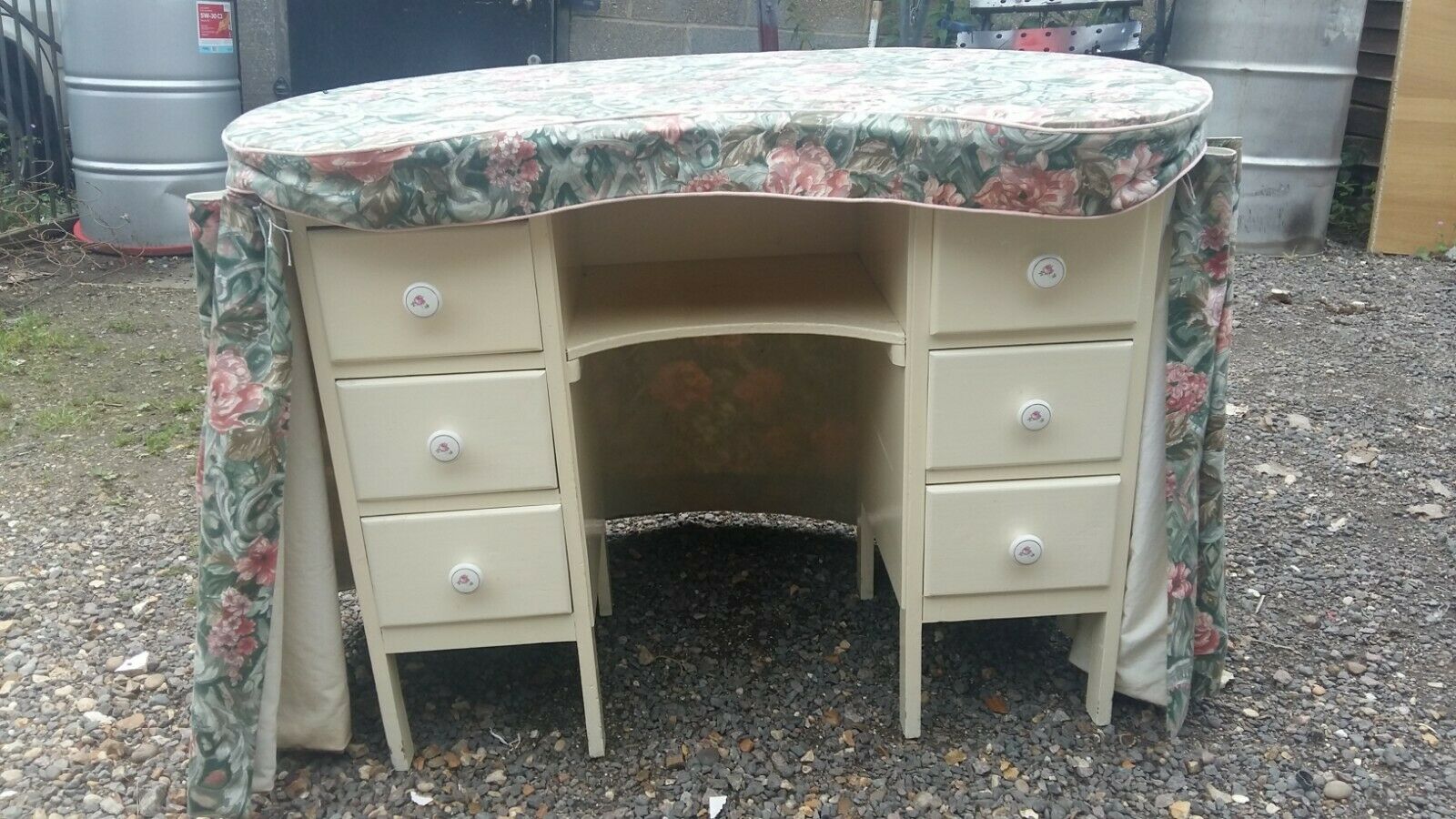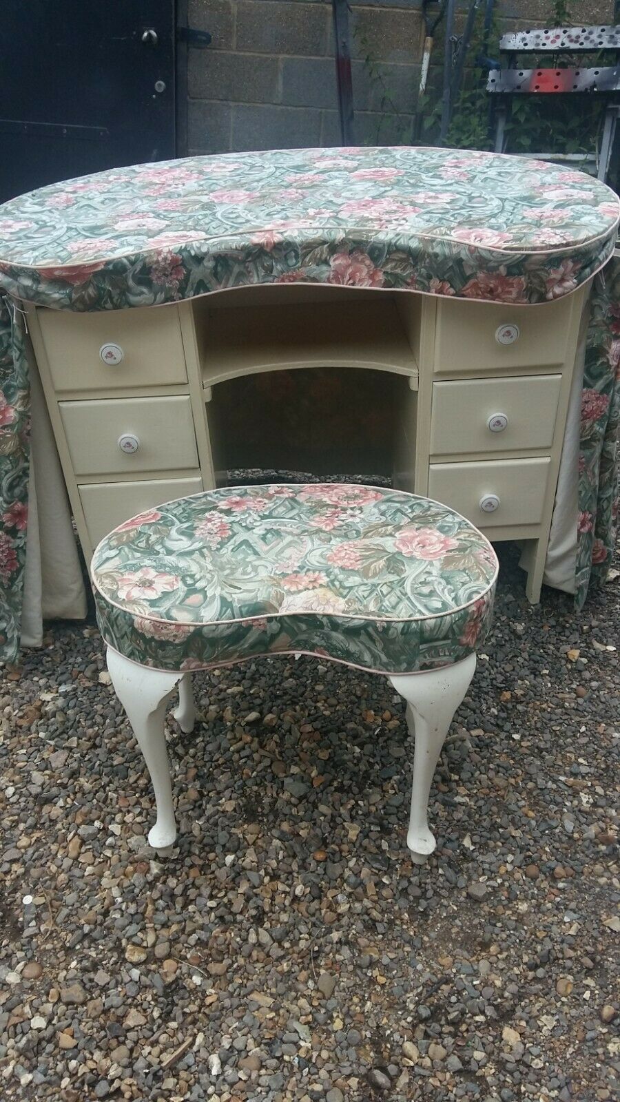 Vintage kidney shaped dressing table – floral chintz cover – 6 drawers