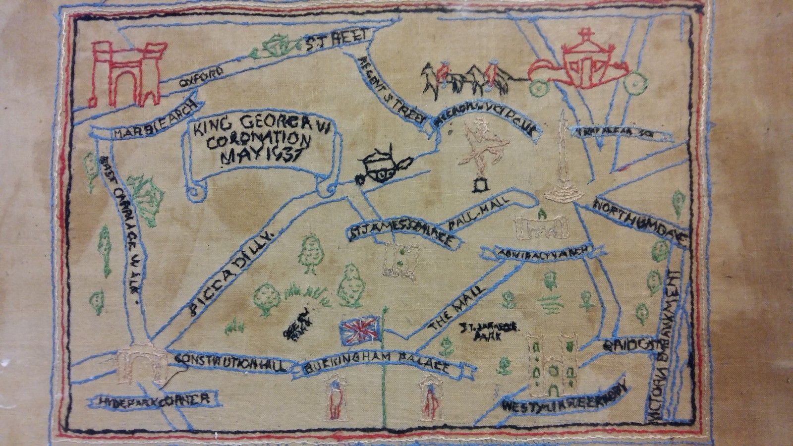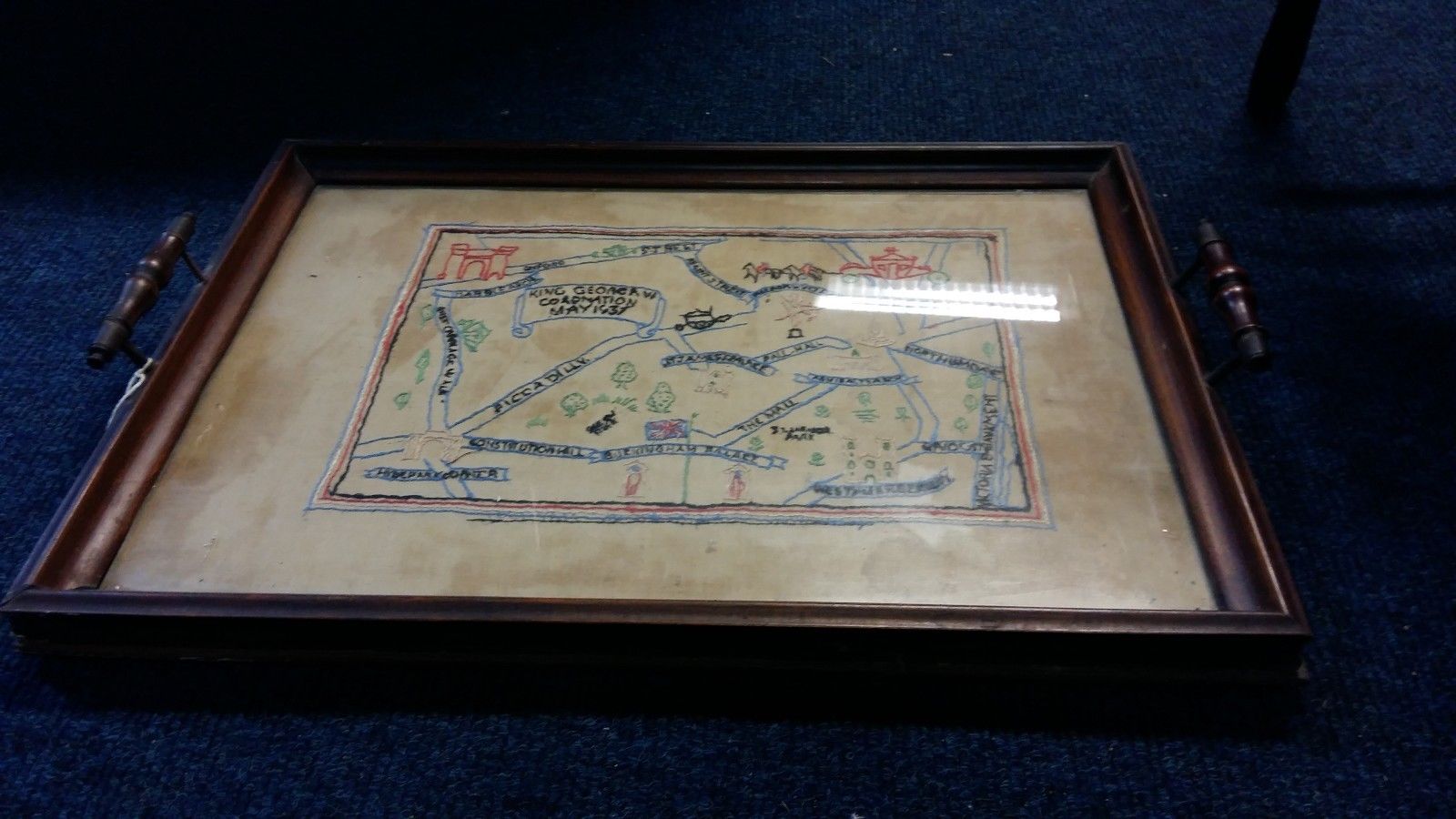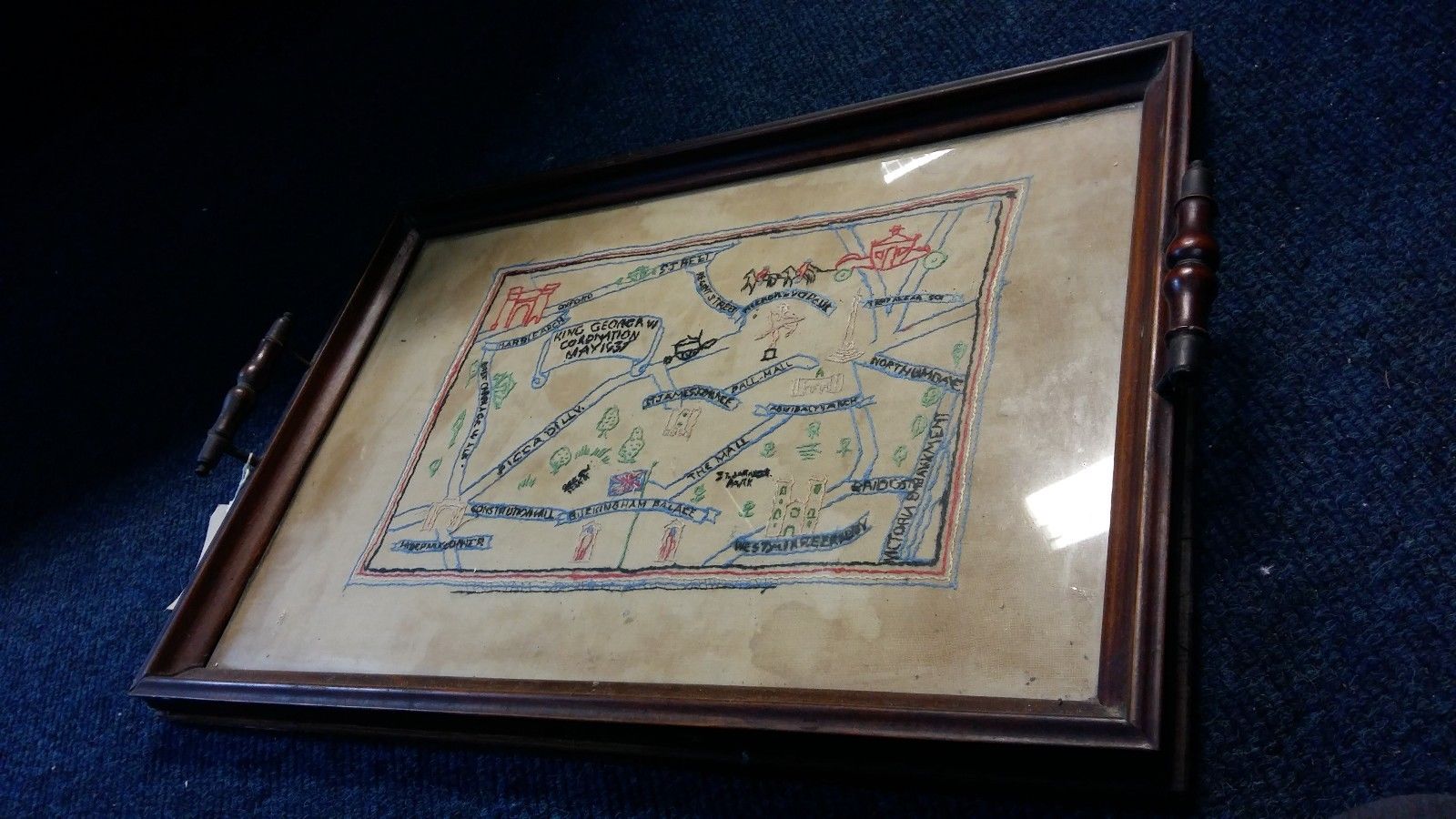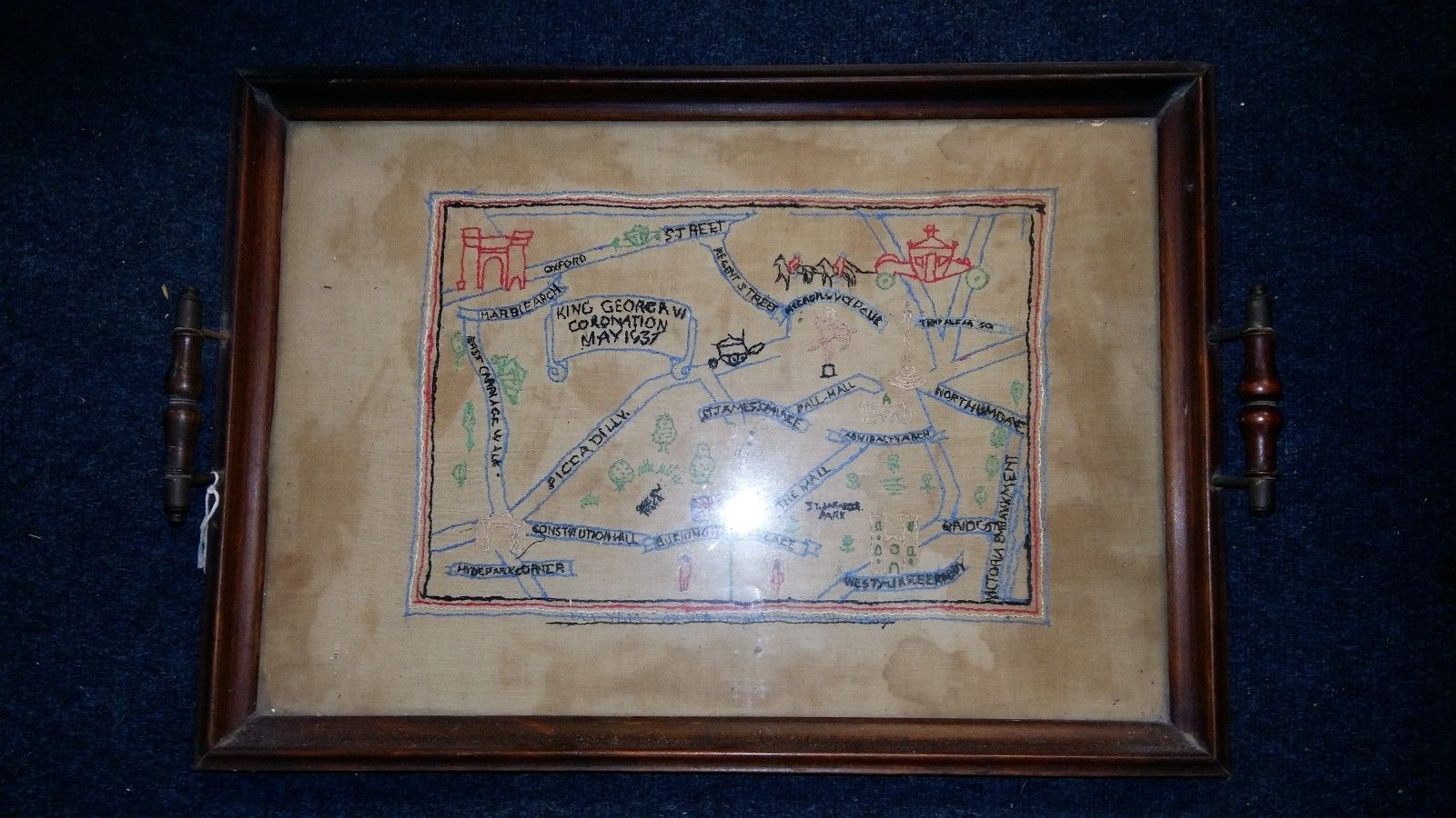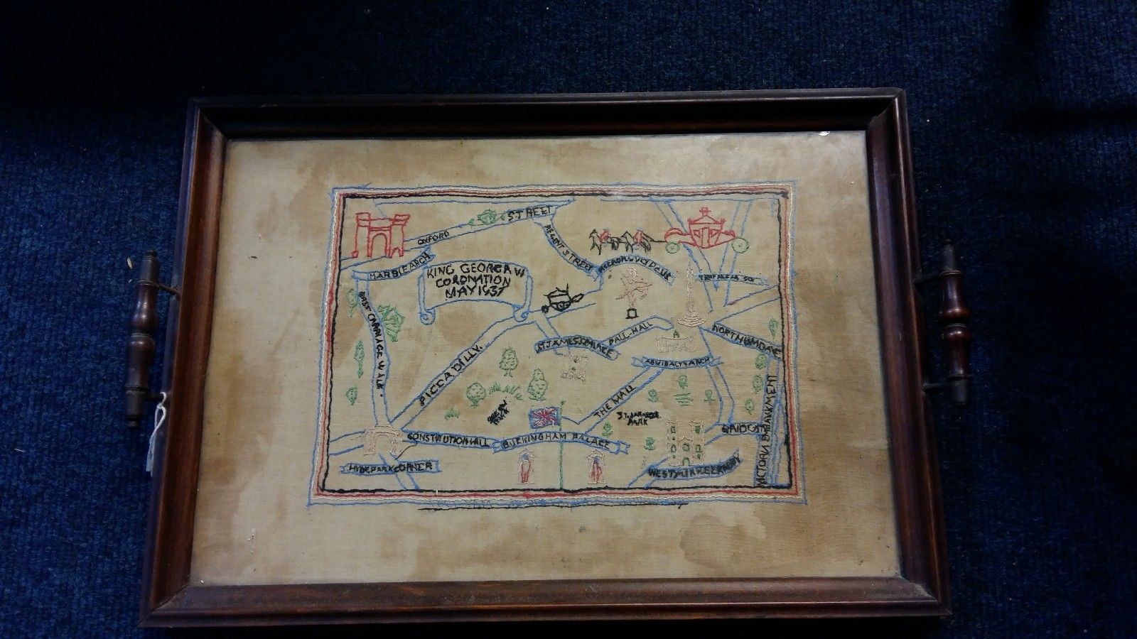 Embroidered needlework sampler tray