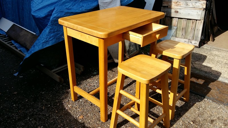 Pine bar table and stools