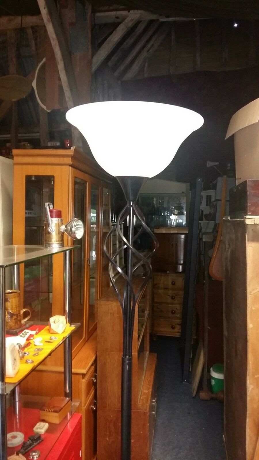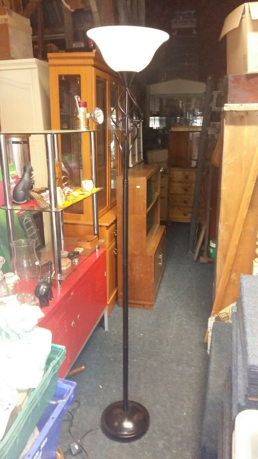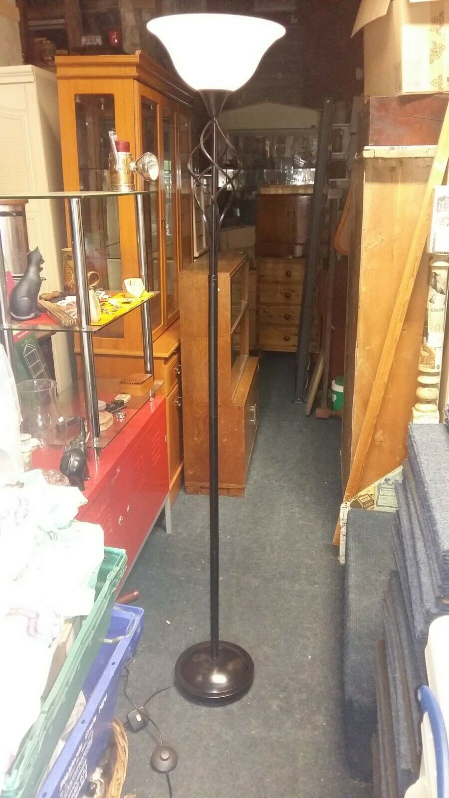 Standard lamp – steel uplighter with glass shade 240v  foot switches