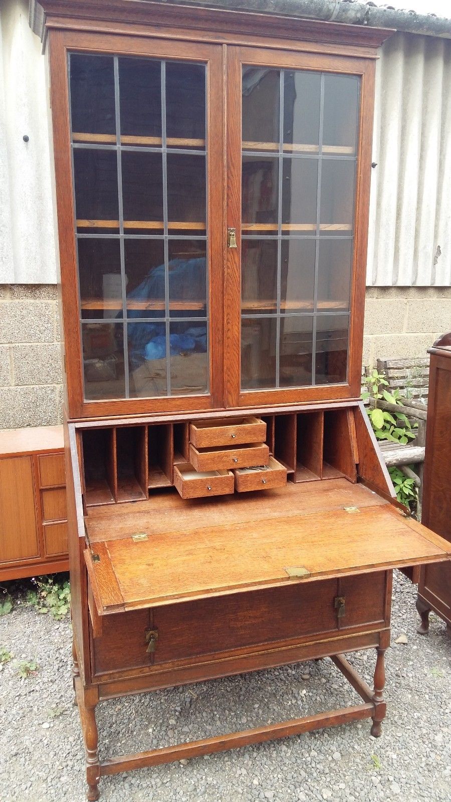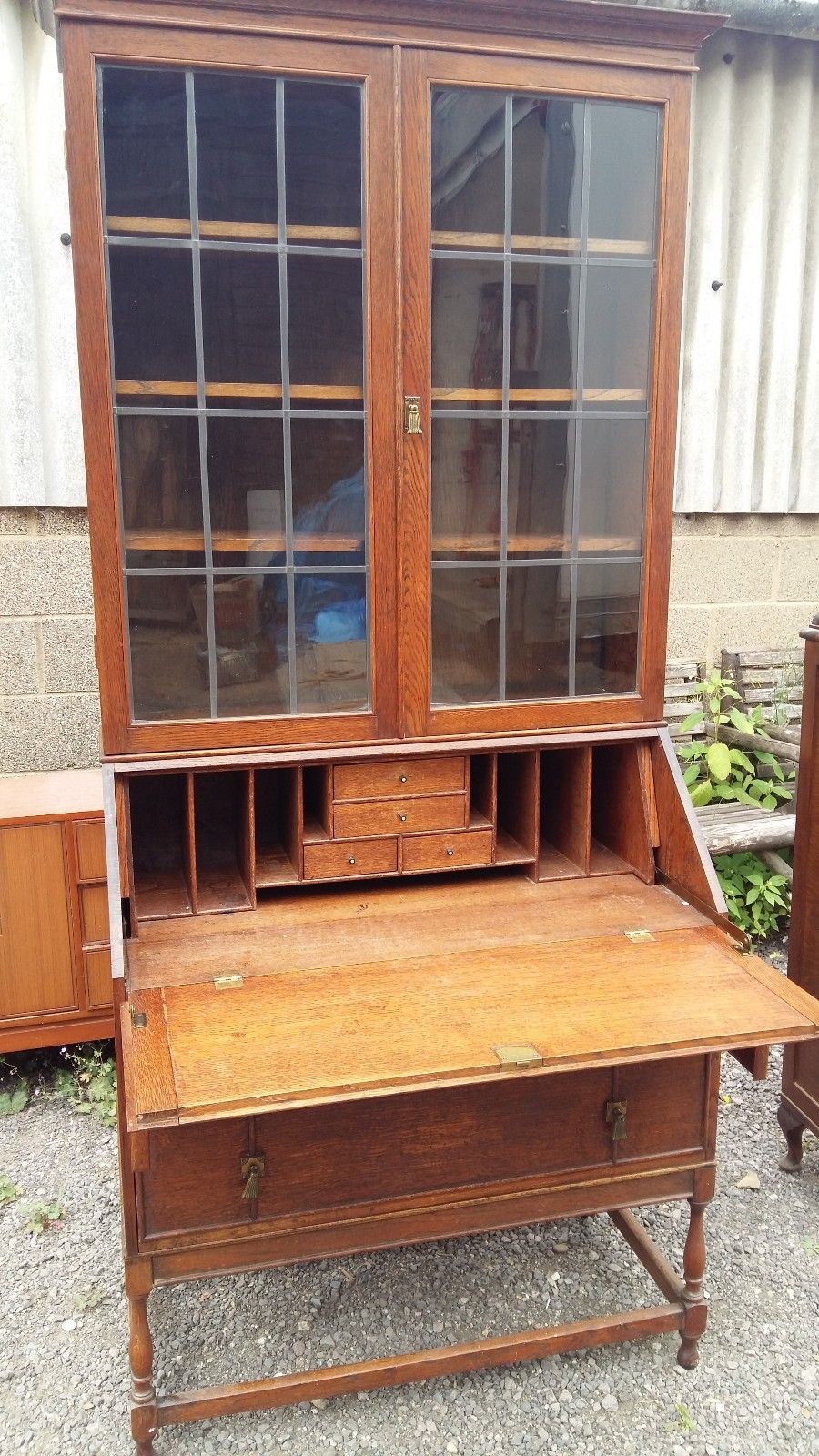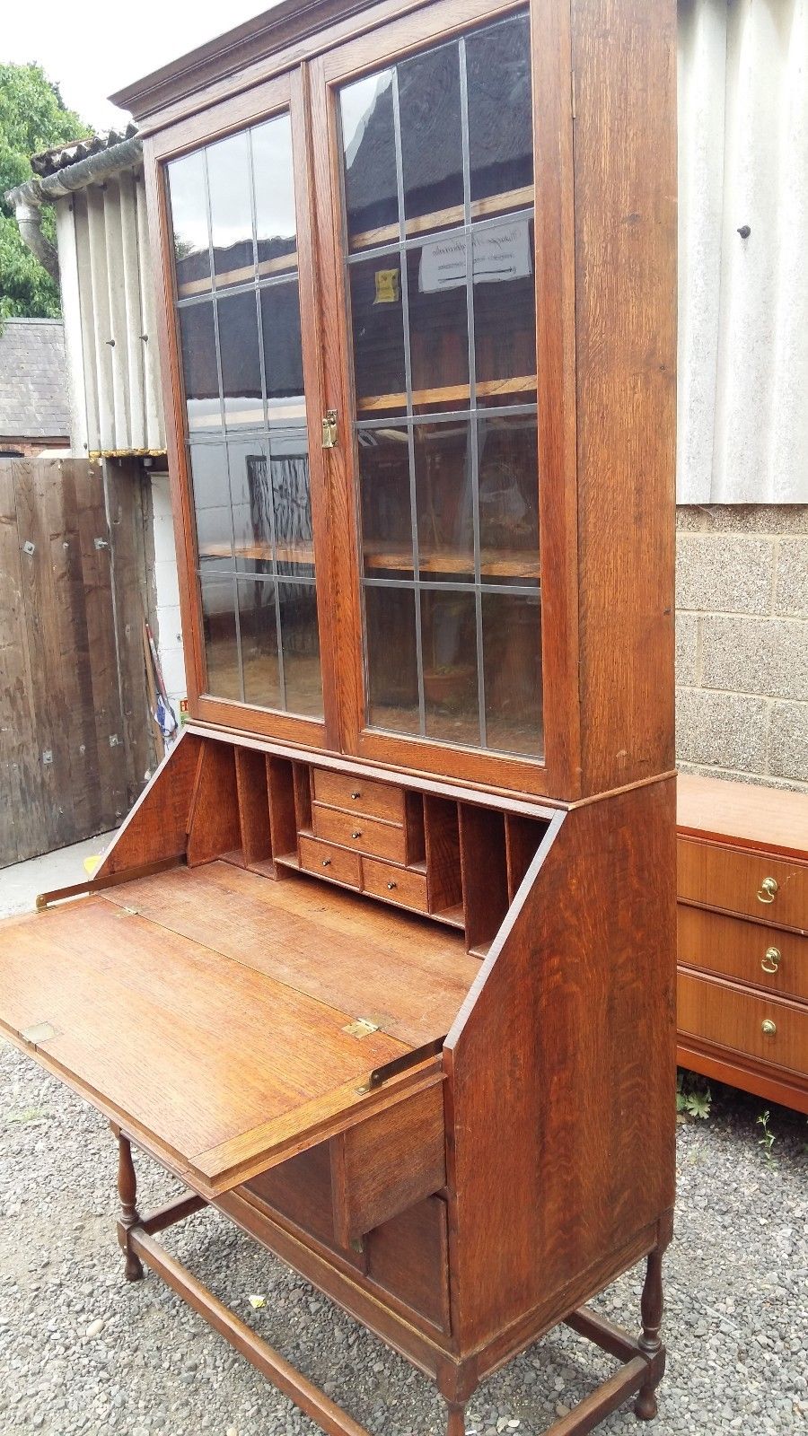 Vintage oak bureau/bookcase – writing desk