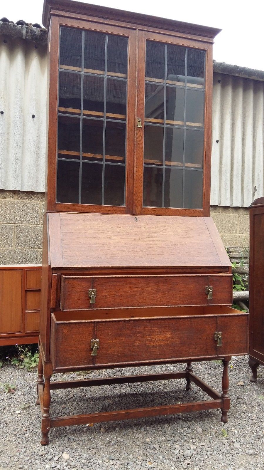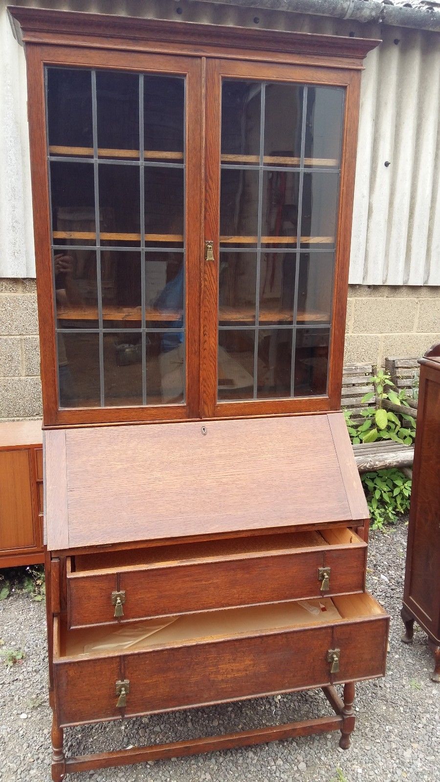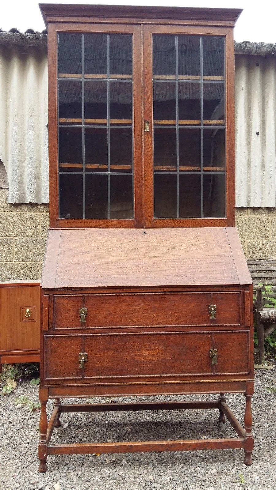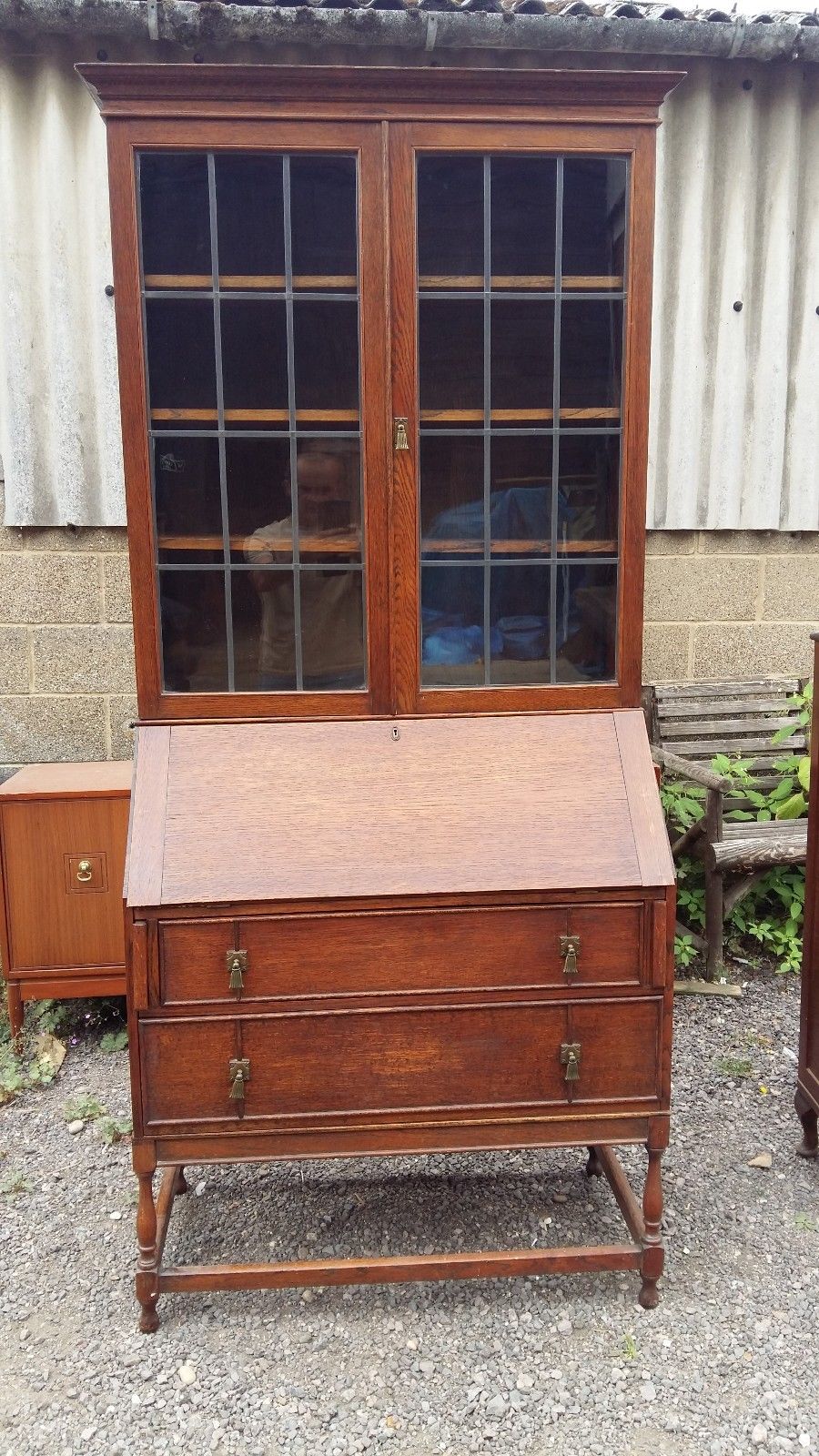 Vintage oak bureau/bookcase – writing desk